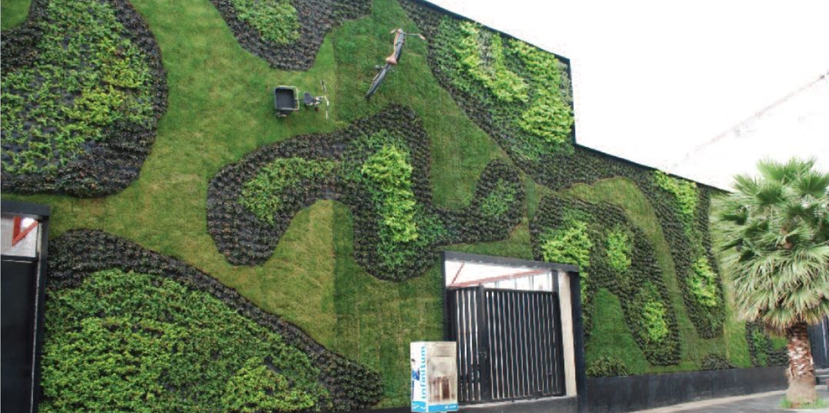Bu yarı geçirgen yüzey, yağmur suyunu alarak zamanla cephe yüzeyine bırakır. Yosun, eğrelti otu, liken vb… fazla bakıma ihtiyacı olmayan organik ürünlerle yapılan bu örtü natürel havalandırma da sağlar. Temiz su, sıcaklık dengeleme, pH ayarı, ışık, besin çözümleri ve oksijen alışverişi (besin oranları oksijen), ’Yeşil Düşey Giydirme Cepheler’in başarılı senkronizasyonunun bir parçasıdır. Yaklaşık 20-25 m²’lik bir cephe modülünün bir ağaç kadar toz absorbe etme kabiliyeti yaratılabilir.